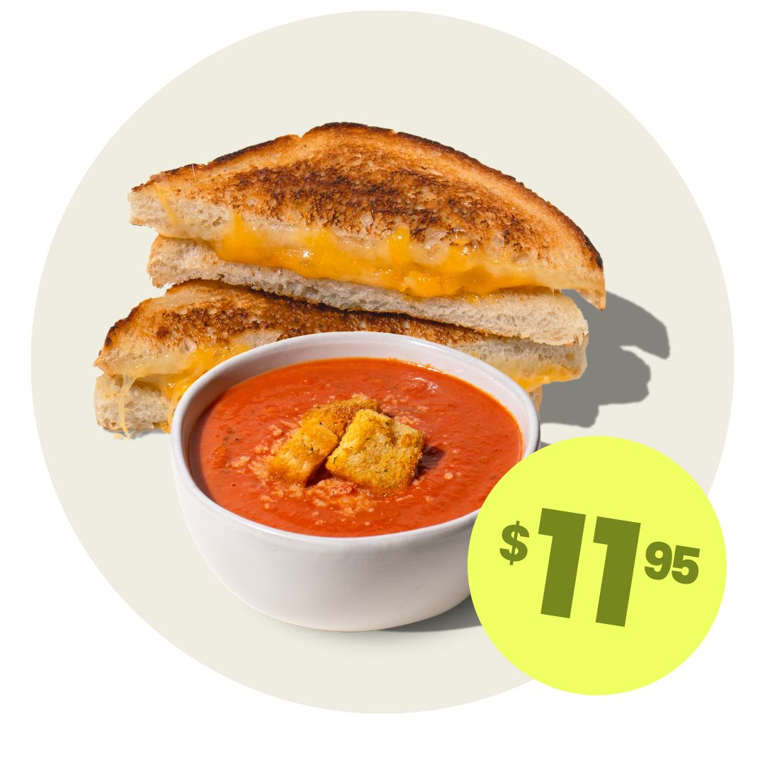 Duo Deal: Warm up your winter day with the ultimate duo — toasted grilled cheese and creamy tomato soup.